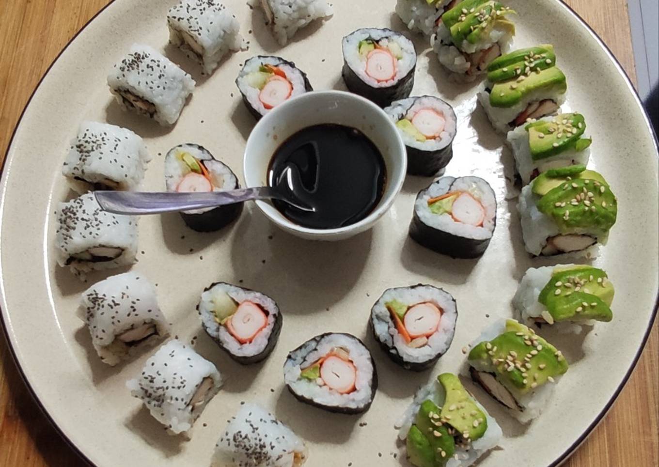 Just in addition, the time it takes to cook Uramaki de pollo teriyaki y maki de surimi sushi estimated approx 1 hora aprox..