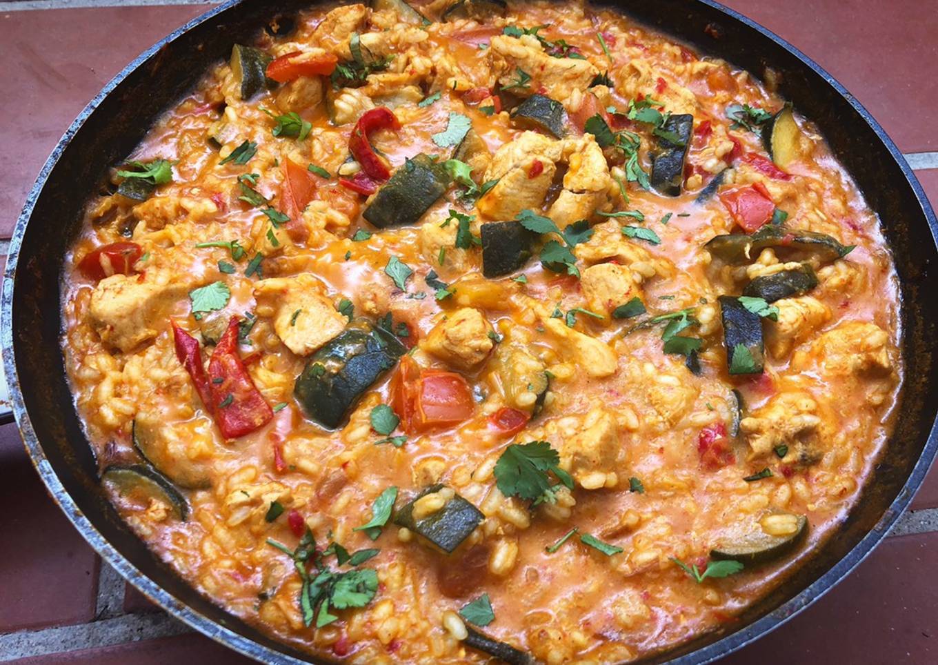 Hoy hemos adaptado un curry de pollo a el arroz típico , cocinado todo junto, fácil y muy sabroso !!