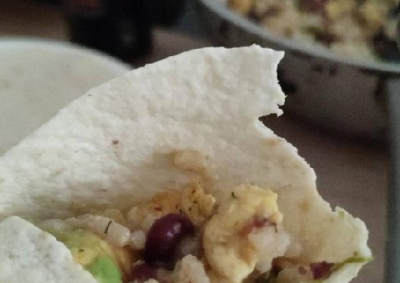 - Ya queda solo montar el burrito, echamos un poco de la mezcla en el medio, echamos algo de aguacate y lo enrollamos. Riquísimo!!