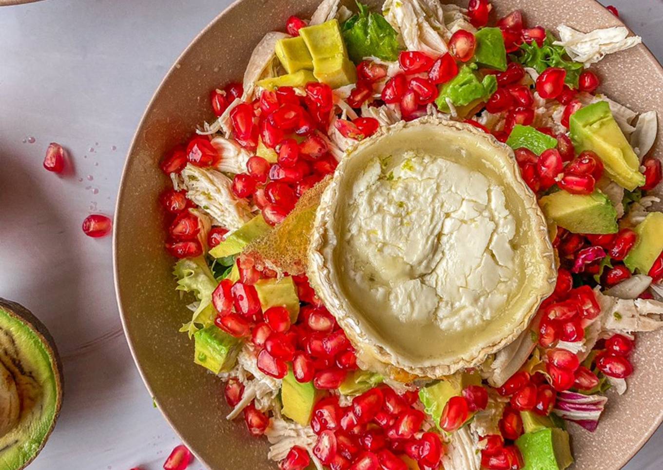 Ensalada de pollo y granada con vinagreta de lima y miel