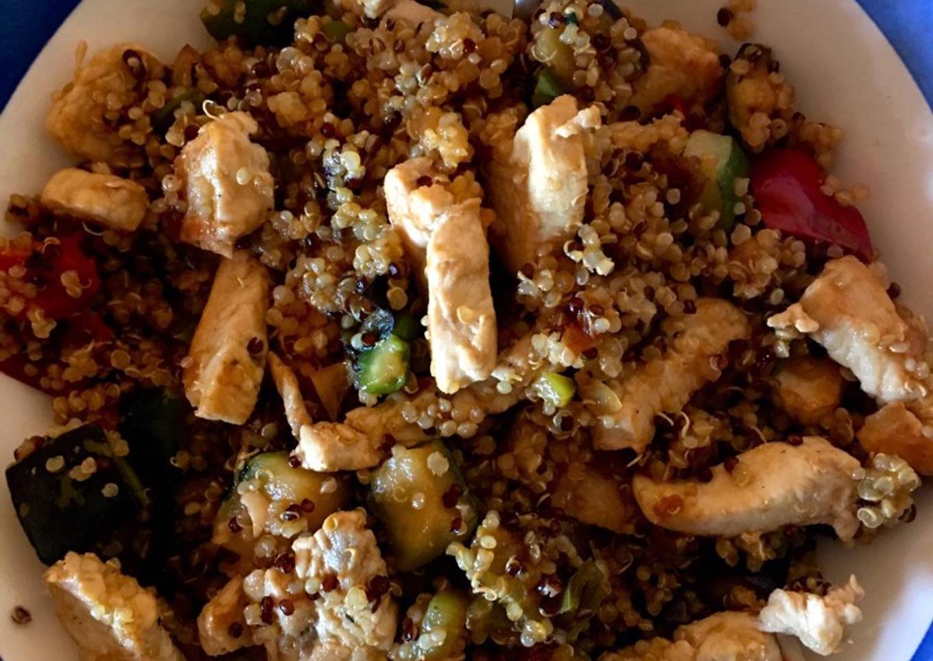 Wok de verduras con pollo y quinoa