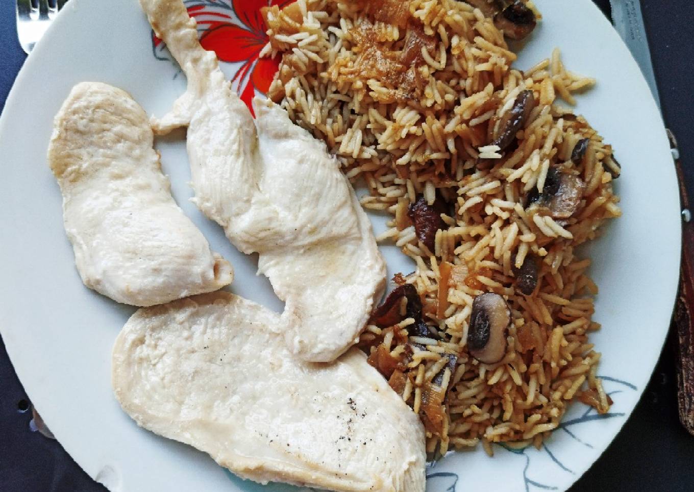 Con lo que me sobró de hacer ayer el ramen de Irene en la super clase que nos preparó hoy he preparado un riquísimo arroz basmati, acompañamiento perfecto para unas pechugas a las plancha.