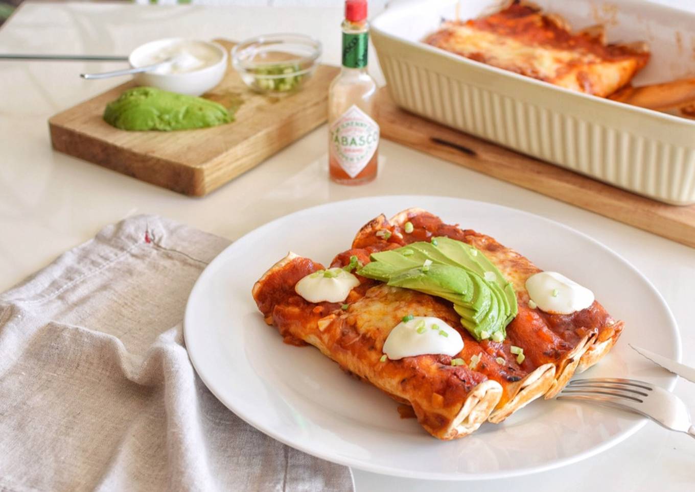 - Para dar el toque fresco nuestras enchiladas Las servimos con el aguacate, el yogur natural y el cebollino.
