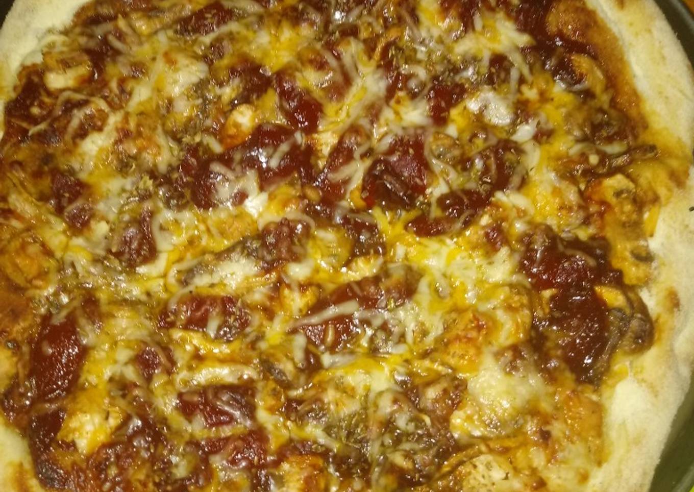 Pizza de pollo y champiñones a la barbacoa con un toque picante