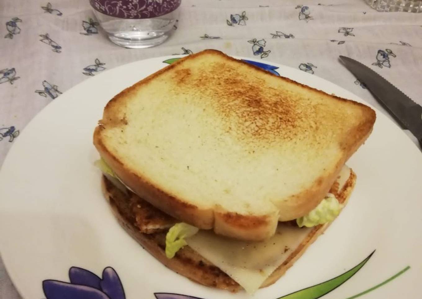 - Tostamos el pan en una sartén con mantequilla derretida, ponemos la loncha de queso en uno de los panes para que se derrita