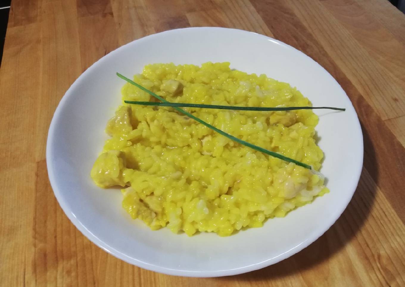 - Cuando esté el arroz listo lo añadimos en la sartén con el pollo y la cebolla.
