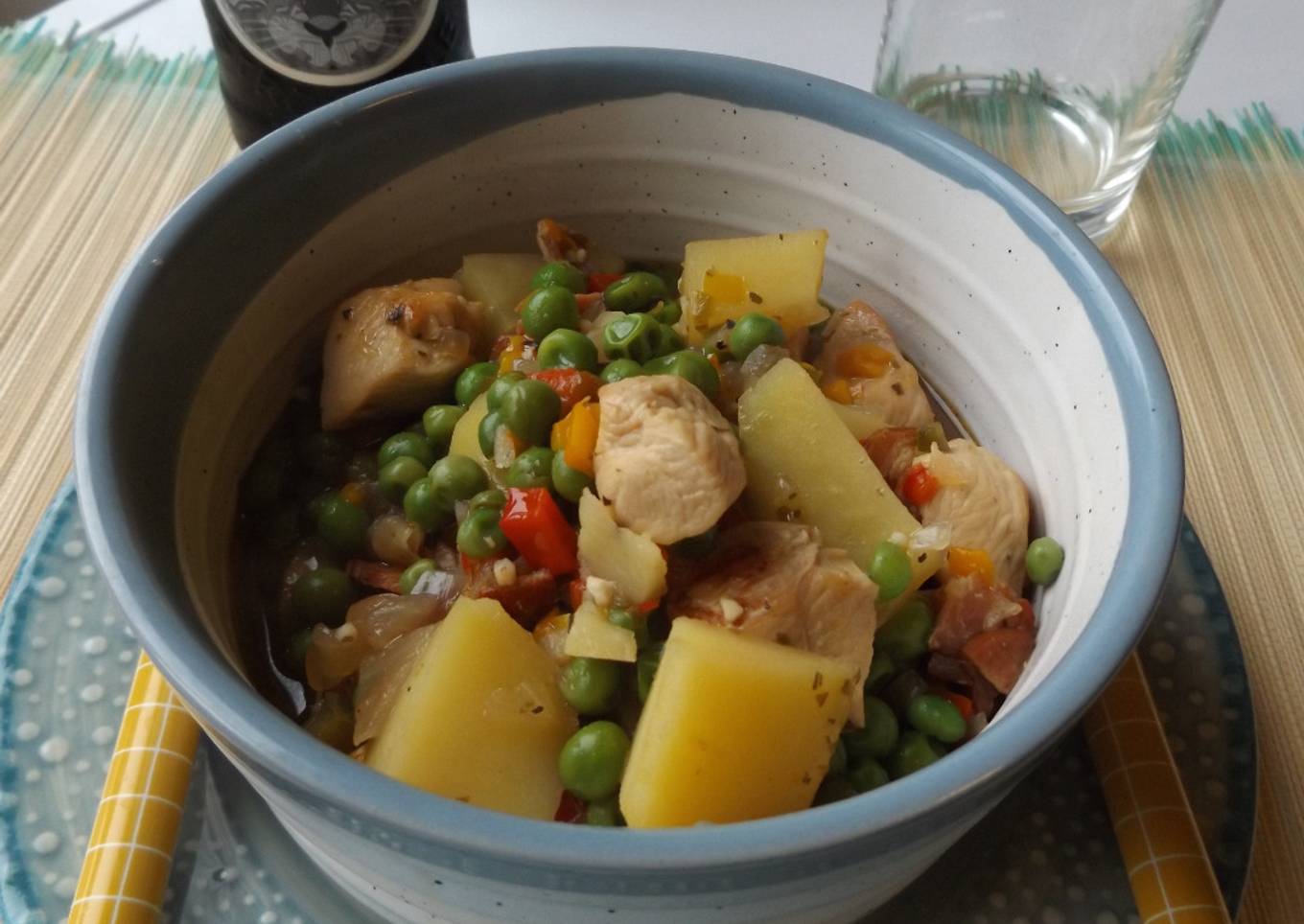 Instructions to make to make Guisado de pollo con patatas y pimientos variados