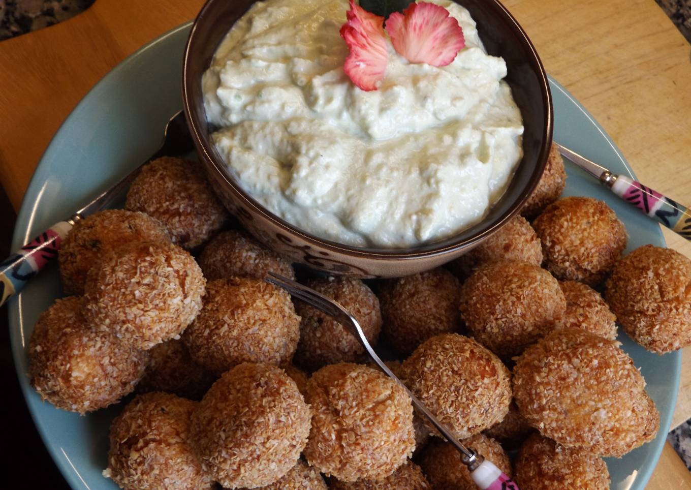 - Dejar 1 hora en la nevera y hacer bolitas. Pasar por salvado de avena y freír en aceite caliente.