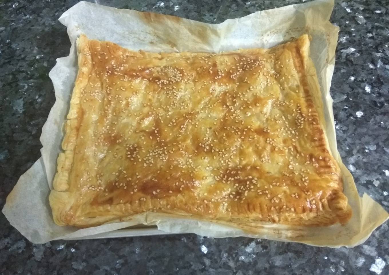- Metemos al horno precalentado a 200°C durante 20-25 minutos o el tiempo necesario para que se dore el hojaldre. Debemos asegurarnos también de que la parte de abajo está bien hecha.