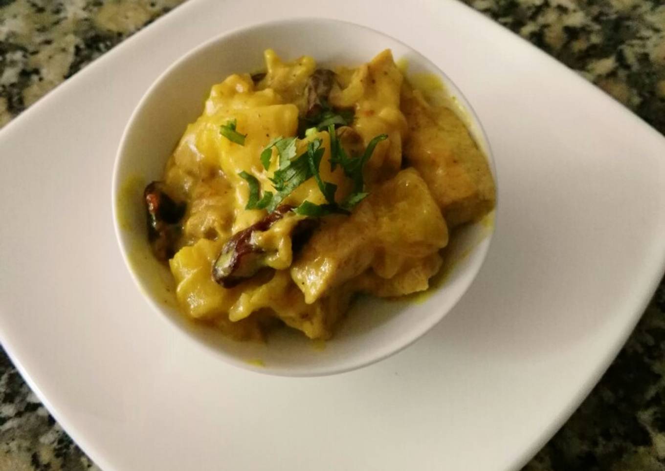 - Echar la manzana y el curry, las pasas, la nata, sal y pimienta a gusto cocinar como 10minutos.