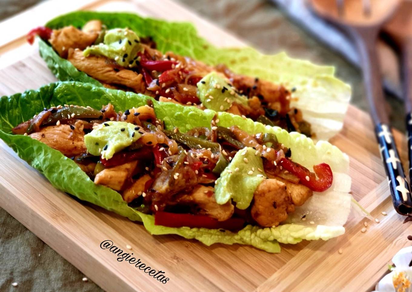 Tacos de lechuga rellenos de pollo y verduras